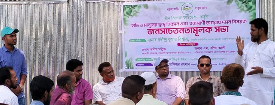কুড়িগ্রামের জেলার সীমান্তবর্তী উপজেলা রাজিবপু্র এবং রৌমারীতে ভারত থেকে আসা বন্যহাতির কোন ক্ষতি না করে নিজেদের সম্পদ কিভাবে নিরাপদ রাখা যায় এবং ক্ষতি হওয়া সম্পদের ক্ষতিপূরণ কিভাবে দেওয়া যায় এই বিষয়ে জনসচেতনতামূলক সভায় সভাপতিত্ব করেন গ্রীন ভিলেজ ফাউন্ডেশন এর সাংগঠনিক সম্পাদক আমিনুর রহমান মাষ্টার।