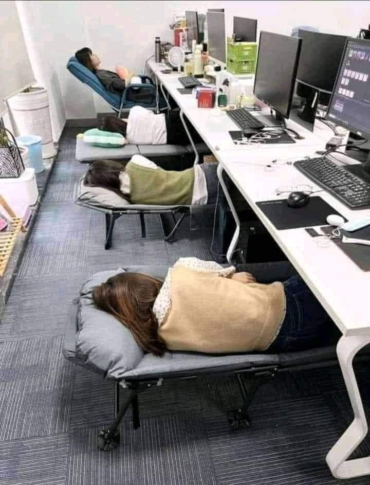 ভলান্টিয়ার প্রতিনিধি: খুবই কর্মঠ, কাজ পাগলা চাইনিজরা শনি ও রবি দুইদিন ছুটি দেয়; দুপুরে লাঞ্চের পরে ঘুমানোর জন্য ১ ঘন্টা সময় দেয়। শুধু তাই নয়, সবাই যাতে ভালোভাবে ঘুমাতে পারে তার জন্য বিশেষ ধরনের চেয়ার দেয়, পরিবেশ বানিয়ে দেয়।