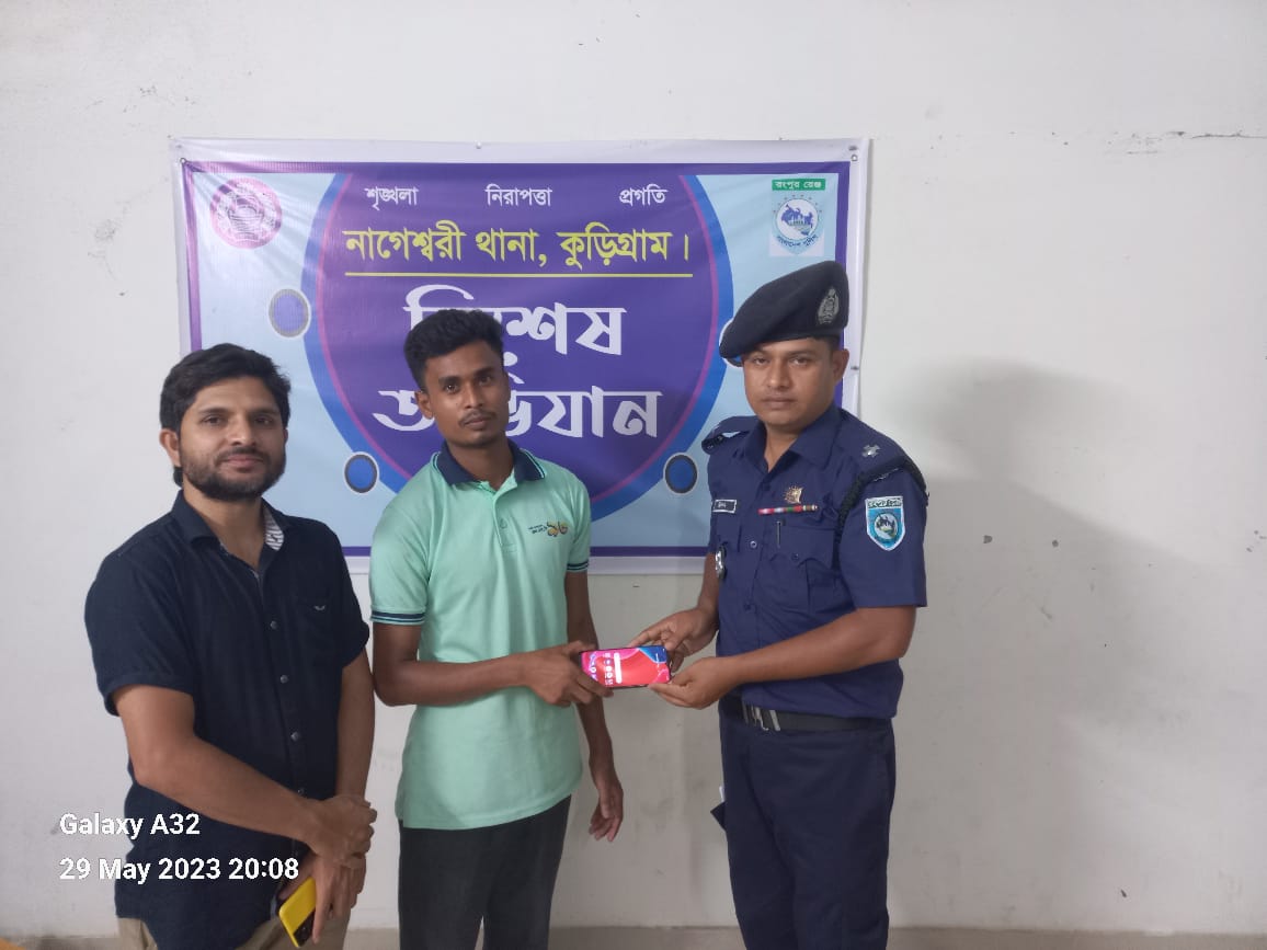 ভলান্টিয়ার (কুড়িগ্রাম) প্রতিনিধি: গত ৮ রমজান কুড়িগ্রাম জেলার নাগেশ্বরী উপজেলার ভিতরবন্দ ইউনিয়নের ঝাকুয়াবাড়ি এলাকার ঝাকুয়াবাড়ী যুব সমাজ কল্যাণ সংস্থার সভাপতি মোঃ আশরাফুল আলম সবুজ বাড়ি থেকে চুরি হওয়া মোবাইলটি জিডি করার মাধ্যমে নাগেশ্বরী থানা, কুড়িগ্রাম কর্তৃক আজ উদ্ধার হয়।