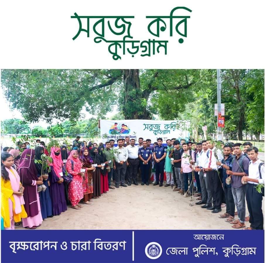“সবুজ করি কুড়িগ্রাম” এই স্লোগানকে সামনে রেখে কুড়িগ্রাম জেলা পুলিশের আয়োজনে কুড়িগ্রাম সরকারি কলেজে বৃক্ষরোপণ ও চারা বিতরণ করা হয়।
