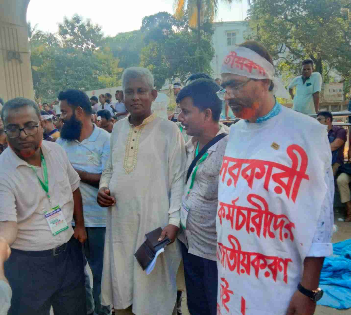 প্রতিদিনের মতো সারাদেশ থেকে হাজার হাজার শিক্ষক-কর্মচারী জাতীয় প্রেসক্লাবের সামনে আজও অবস্থান নেন।