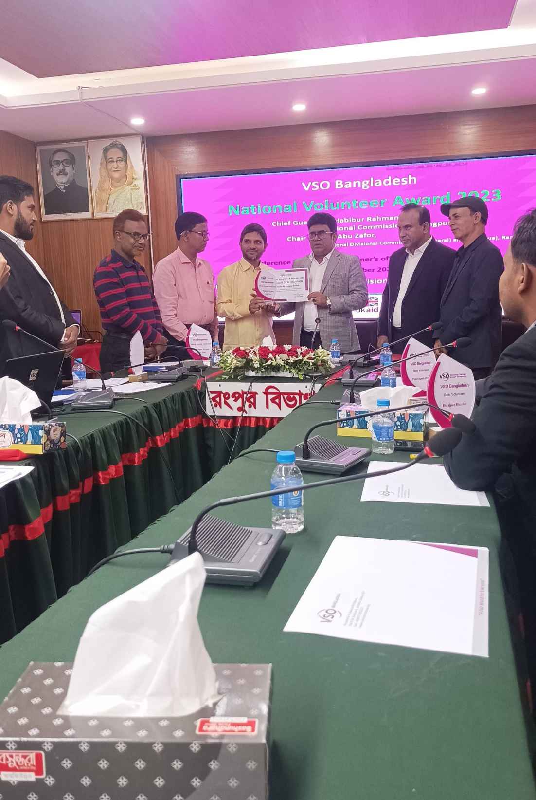 ন্যাশনাল ভলান্টিয়ার এওয়ার্ড রংপুর বিভাগীয় প্রোগ্রামে অতিরিক্ত বিভাগীয় কমিশনার মোঃ আবু জাফর মহোদয়ের সভাপতিত্বে অনুষ্ঠানে অন্যান্যদের মধ্যে উপস্থিত ছিলেন ভিএসও বাংলাদেশ প্রজেক্ট ম্যানেজার মোঃ সফিকুর রহমান, মেন্টর মোঃ ইলিয়াস আলী, বিচারক মন্ডলী এবং রংপুর বিভাগের ২৪ জন সনদ প্রাপ্ত ভলান্টিয়ার।