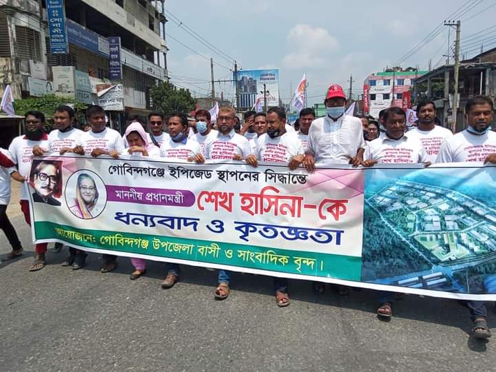 আনন্দ মিছিলের সংক্ষিপ্ত সমাবেশে বীর মুক্তিযোদ্ধা শ্যামলেন্দু মোহন রায় জীবু বাবুর সভাপতিত্বে বক্তব্য রাখেন সাংবাদিক খোকন আহম্মেদ, রাসেল কবির, রফিকুল ইসলাম রফিক, মোয়াজ্জেম হোসেন আকন্দ, আনোয়ারুল ইসলাম, উজ্জ¦ল হক প্রধান, মোস্তফা কামাল সুমন মোঃ রায়হান ফরহাদ লিখন প্রমুখ। বক্তারা, গোবিন্দগঞ্জে ইপিজেড স্থাপনের সিন্ধান্ত নেওয়ায় বঙ্গবন্ধুর সুযোগ্য কন্যা বাংলাদেশ আওয়ামী লীগের সভাপতি প্রধানমন্ত্রী শেখ হাসিনা কে ধন্যবাদ জানান। উপজেলা সহ জেলার আর্থসামাজিক উন্নয়নের বিপ্লবীয় কার্যক্রমের জন্য কৃতজ্ঞতা জ্ঞাপন করেন।