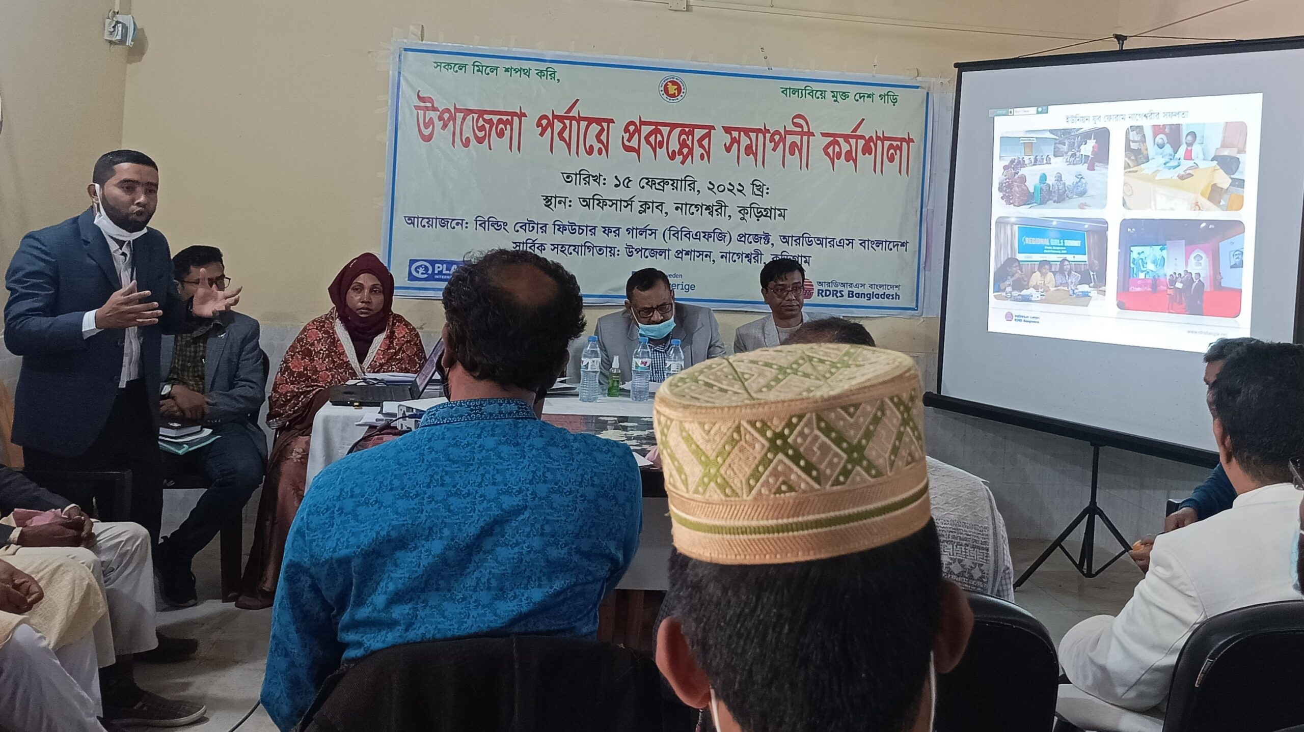 ভলান্টিয়ার (কুড়িগ্রাম) প্রতিনিধি:  ‘সকলে মিলে শপথ করি, বাল্যবিবাহ মুক্ত সমাজ গড়ি’  এই স্লোগানকে রেখে কুড়িগ্রামের নাগেশ্বরীতে উপজেলা পর্যায়ে বাল্য বিবাহ প্রতিরোধে আরডিআরএস বাংলাদেশ ‘বিল্ডিং বিটার ফিউচার ফর গার্লস’ প্রজেক্টের সমাপনী কর্মশালা অনুষ্ঠিত হয়।